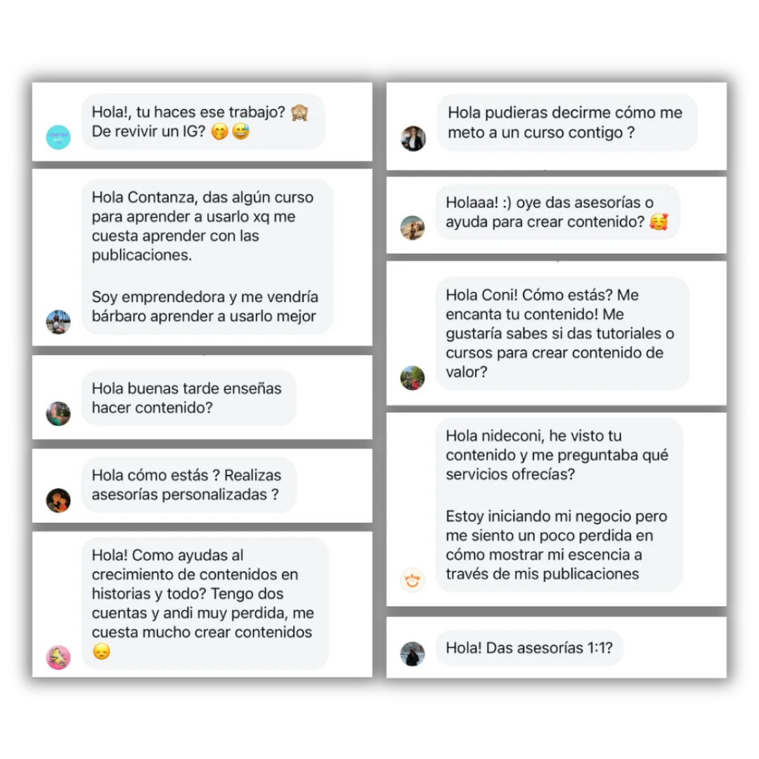 Hoy, las personas llegan a mi bandeja de entrada preguntando por cursos, mentorías y cómo trabajar conmigo.